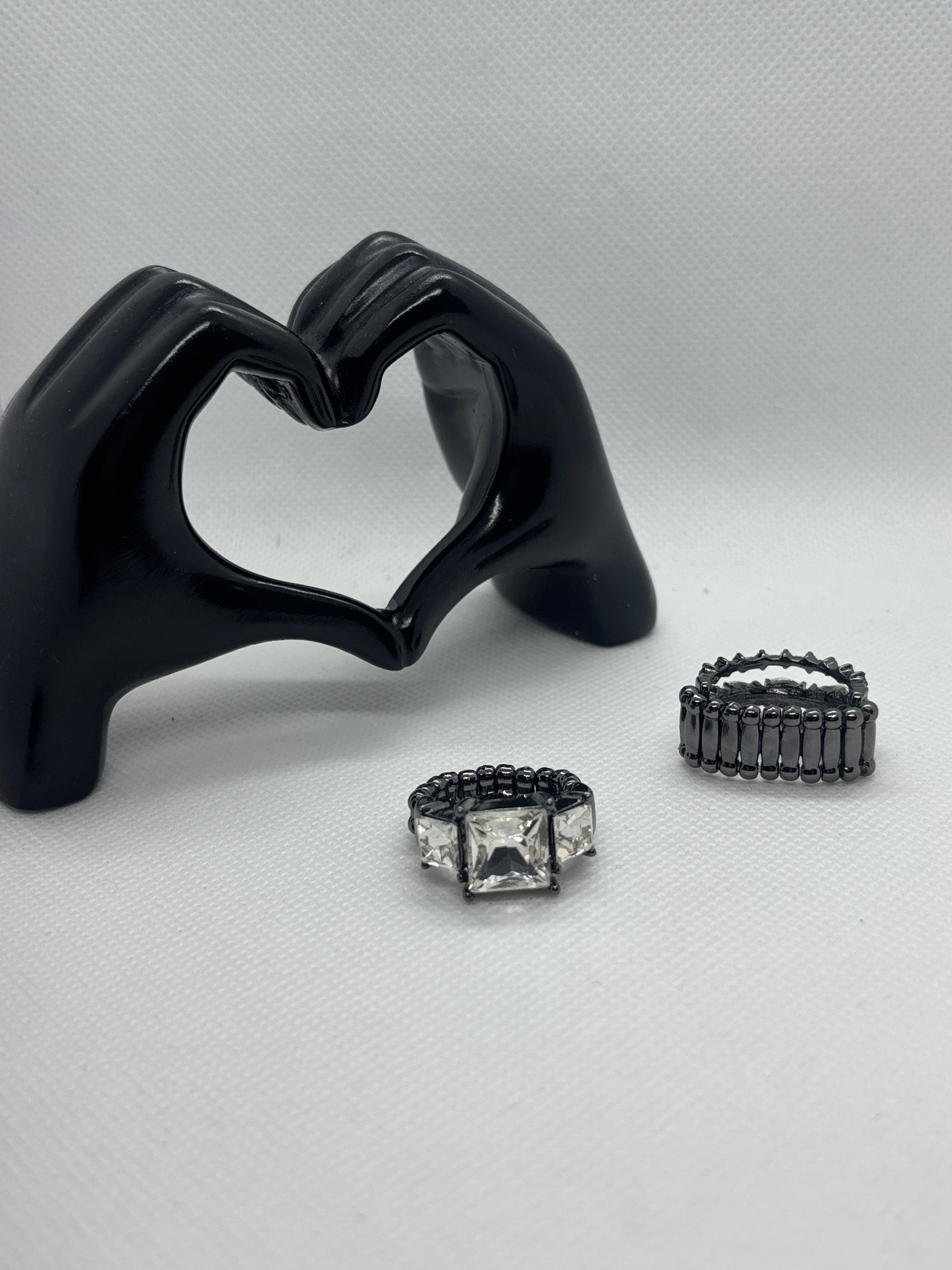 The ring is fitted with a comfortable, stretchy elastic band that allows for a flexible fit across multiple sizes, making it both practical and stylish. Whether worn solo or stacked for impact, Clear Intentions is the perfect choice for glam moments or statement styling.