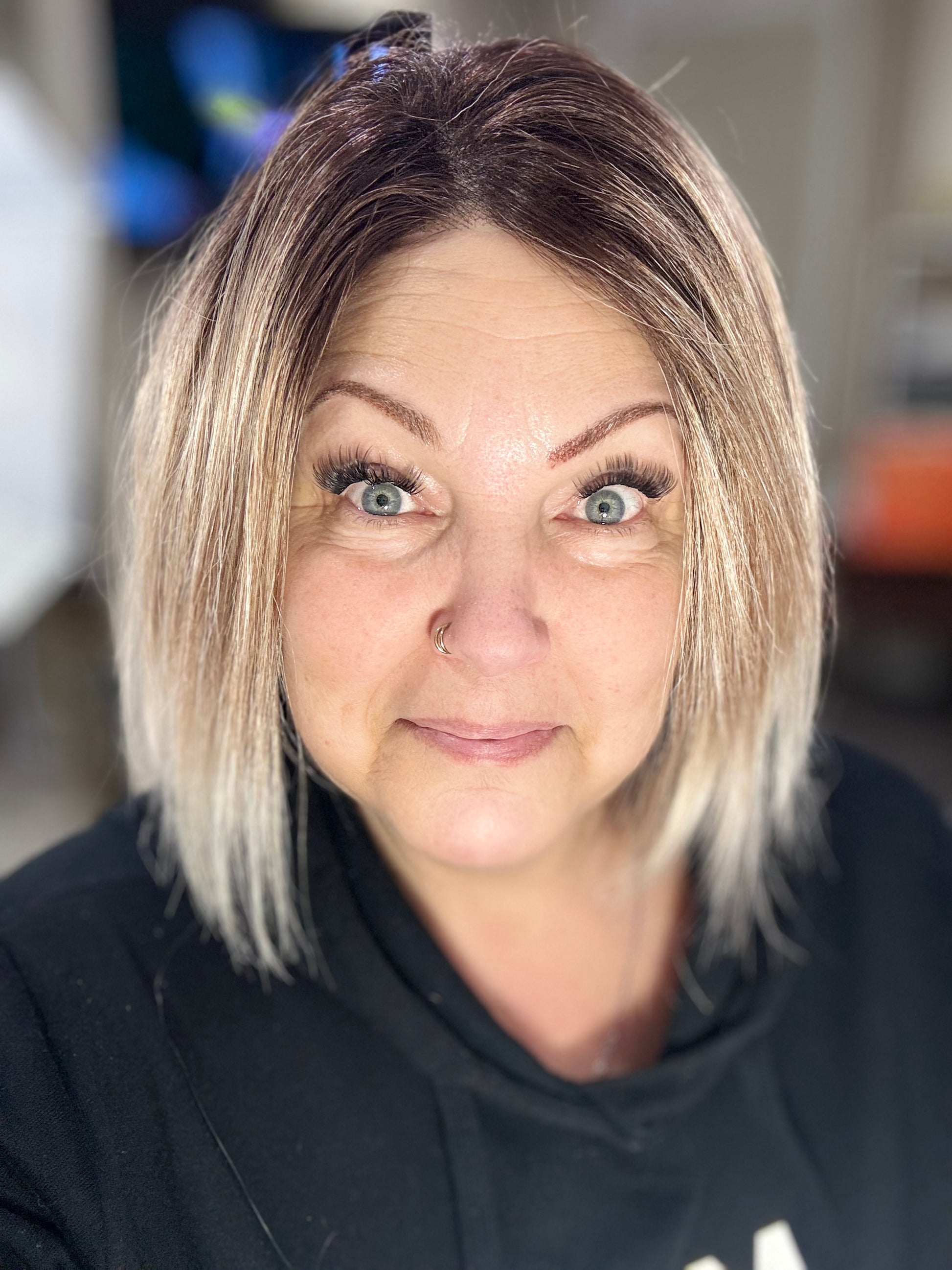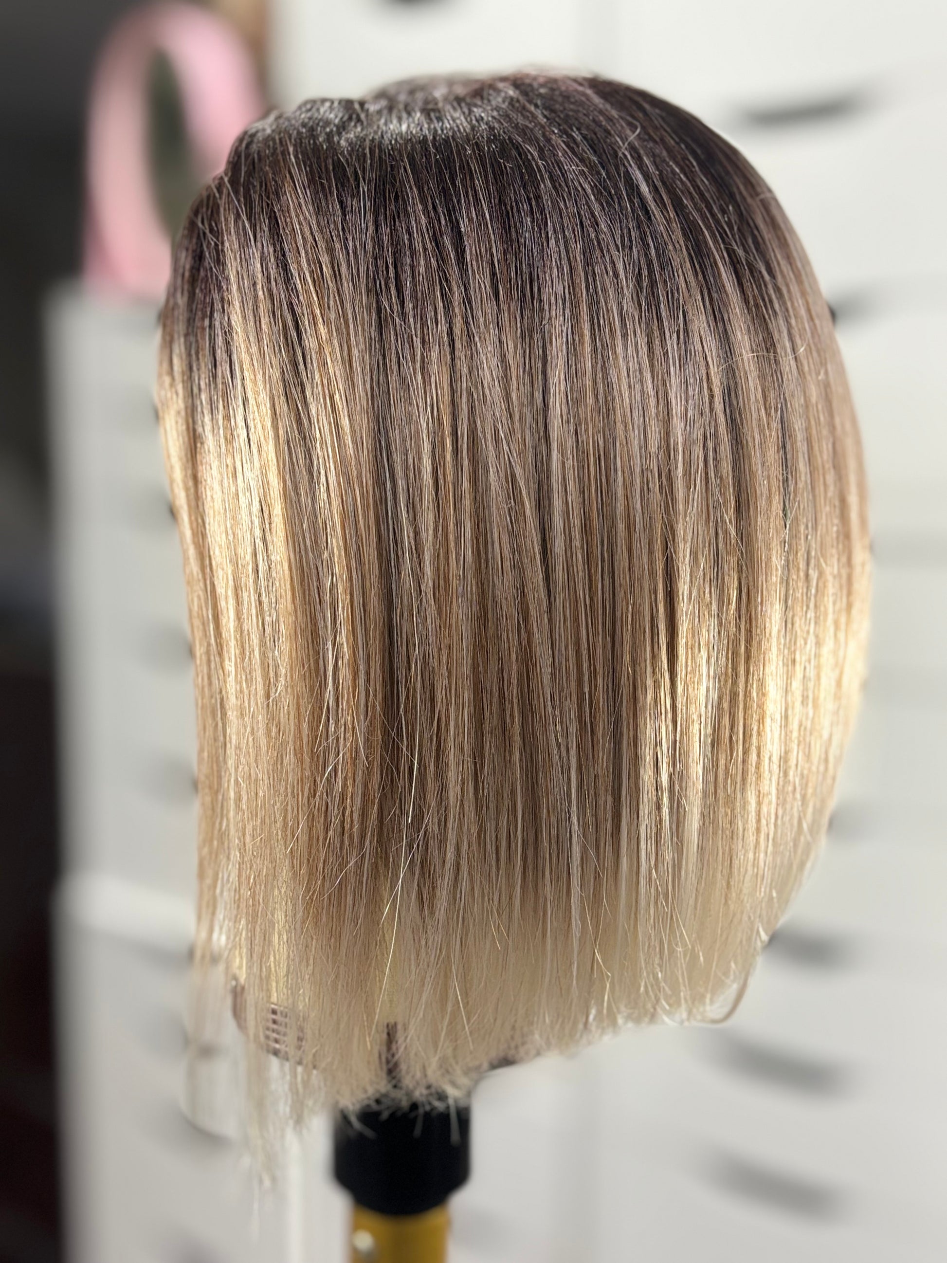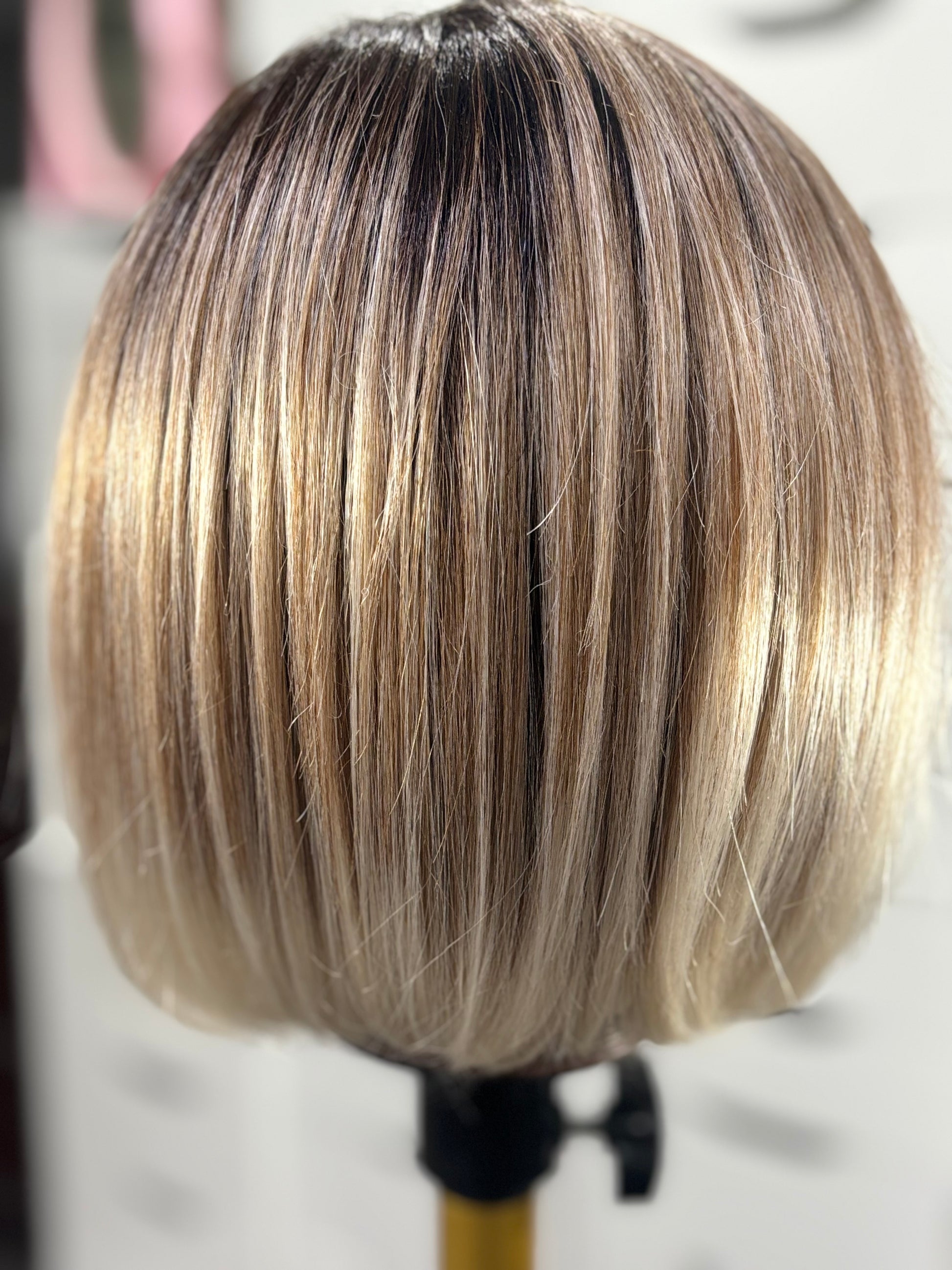 DESCRIPTION/DETAILS: classic straight, sleek design bob, left side Monofilament part