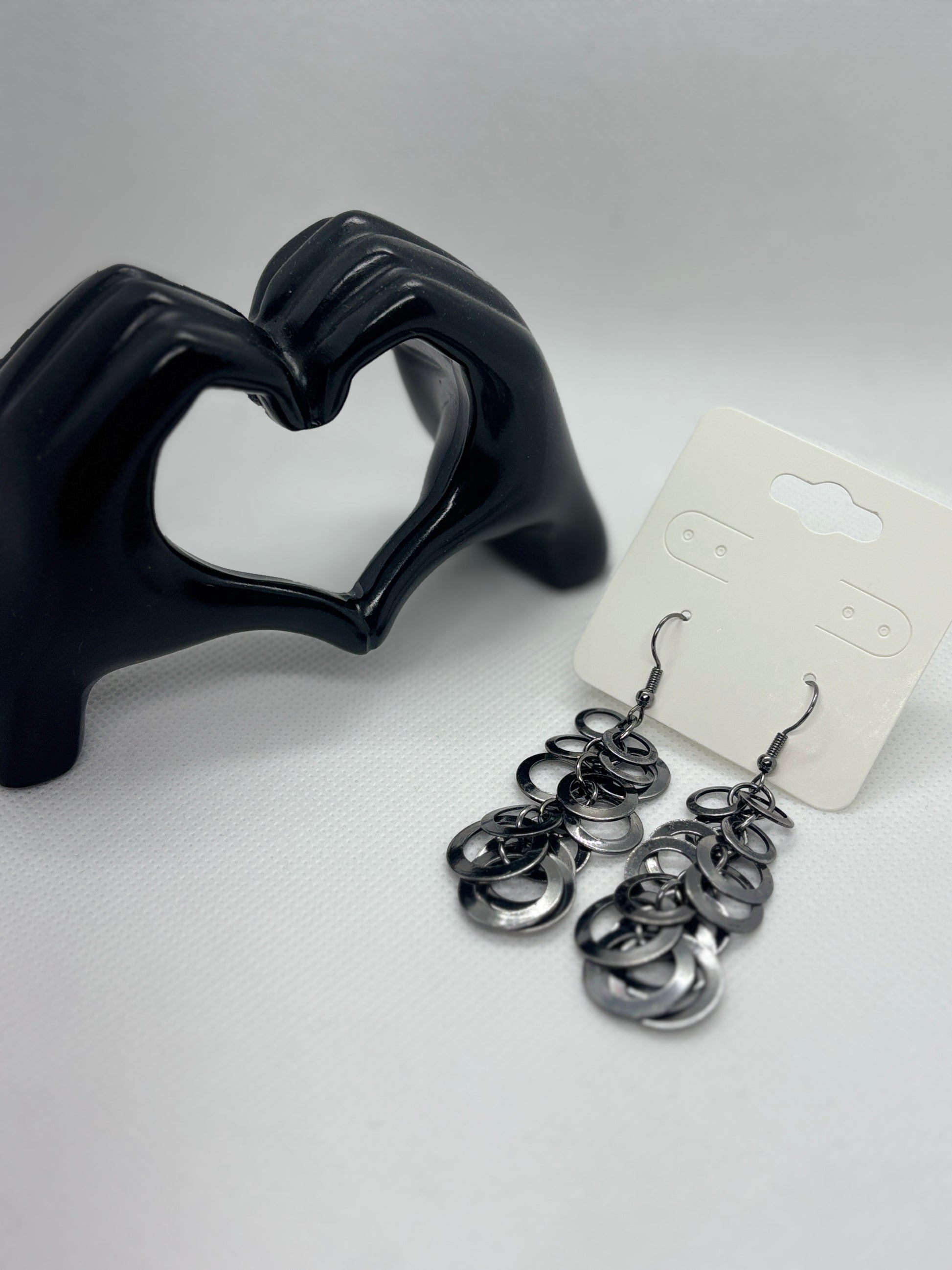 Bold and effortlessly edgy, the Midnight Cascade Hoops are a statement piece for the modern muse. Featuring a dramatic drop of interlinked gunmetal-toned rings, these earrings deliver a cascading effect that’s both fluid and fierce. The high-shine finish and dynamic movement make them the perfect accessory to transition from daywear to a night out. Lightweight yet impactful, they’re made for turning heads with every step.
