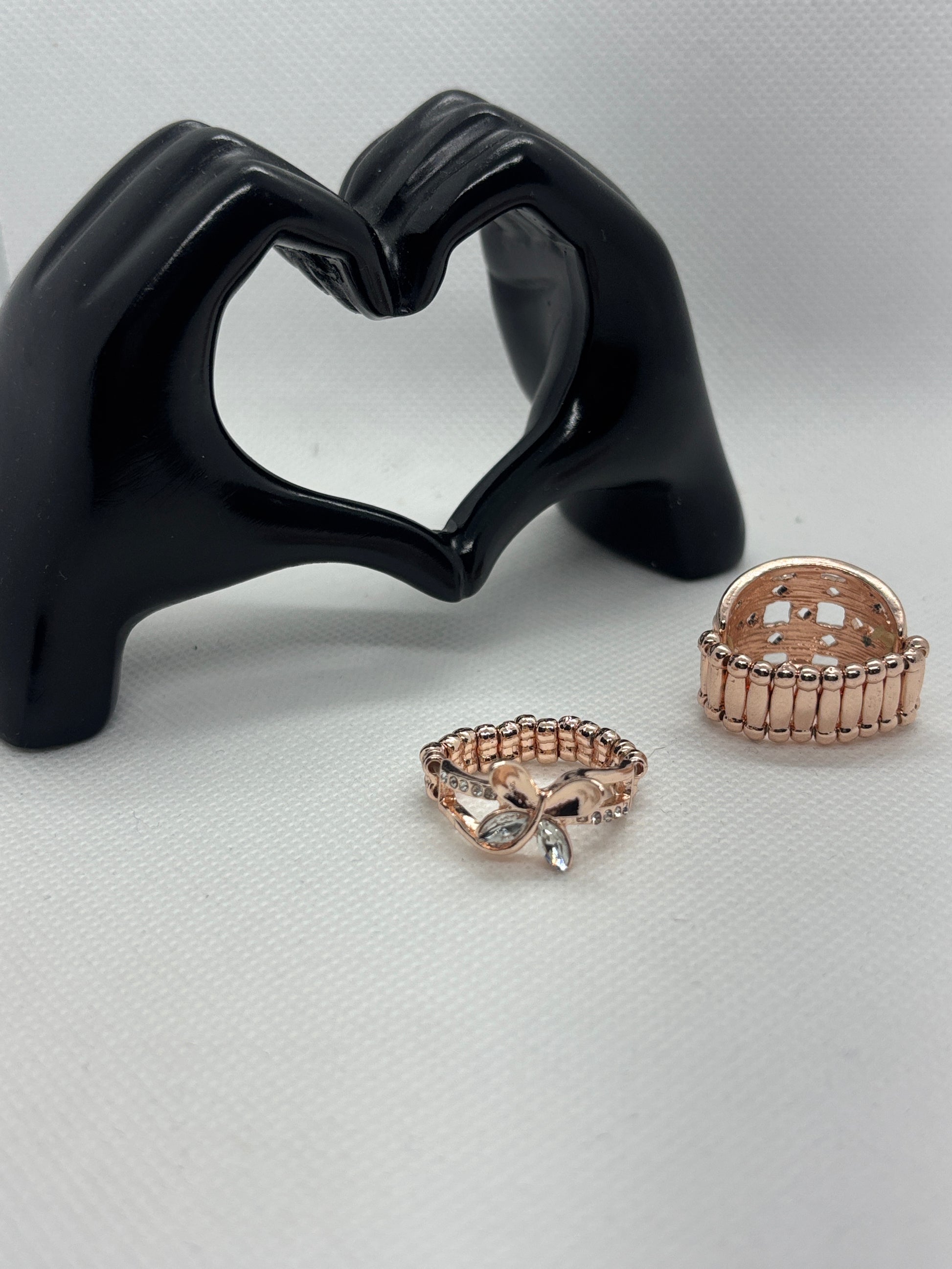 Delicate and graceful, the Petal Whispers Ring blooms with quiet elegance. A rose gold-tone band showcases a petite leaf and vine design accented with tiny white rhinestones, creating a soft sparkle that captures the light beautifully.